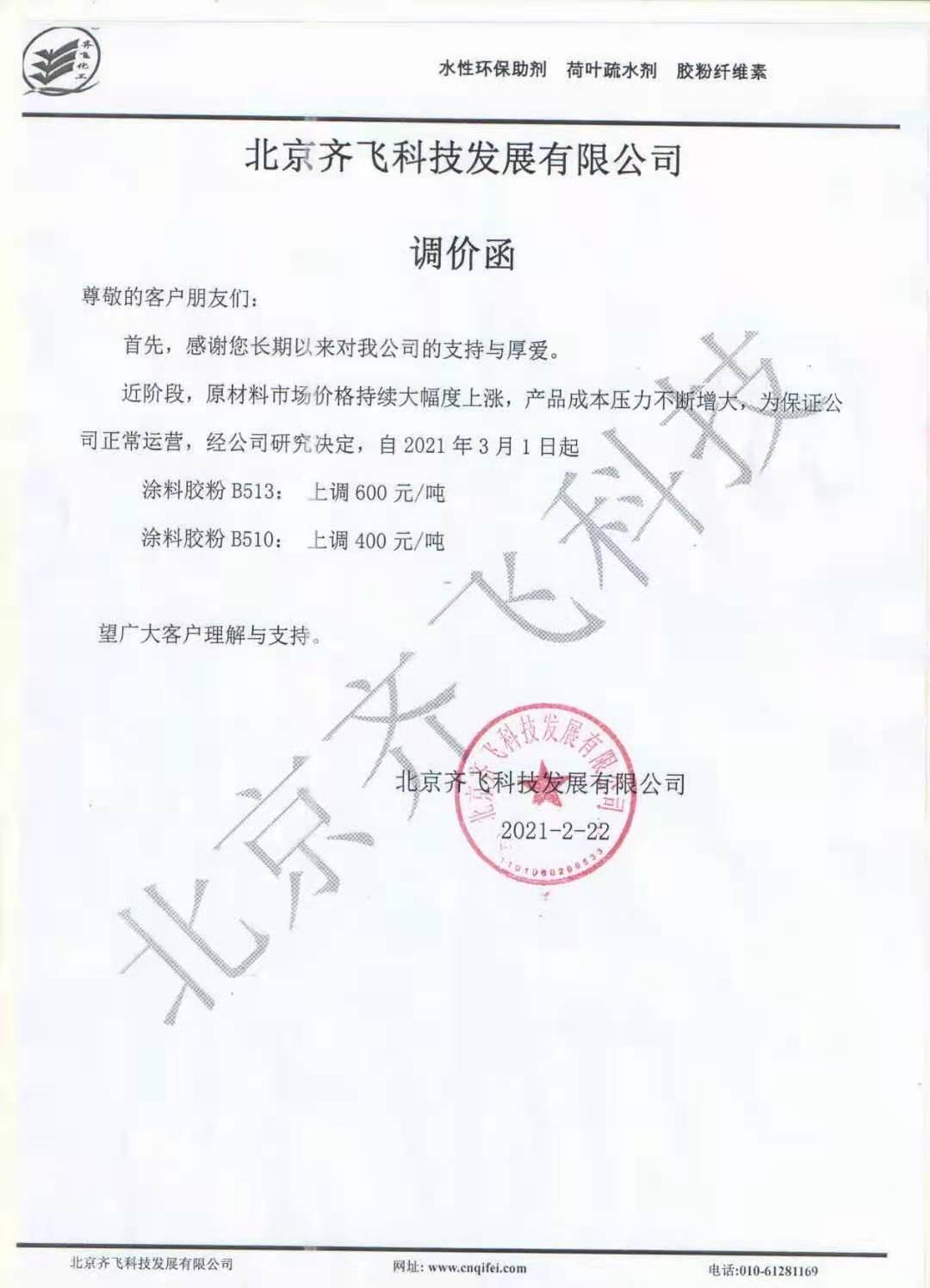 关于涂料胶粉价格调整的通知