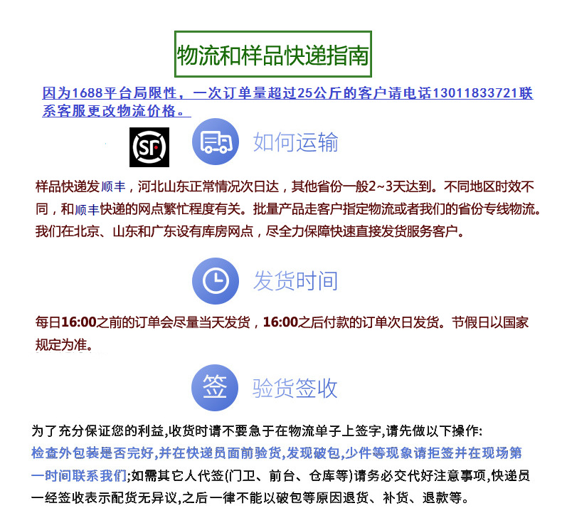非特殊情况和节假日,四点前订单当日发货,顺丰快递样品!